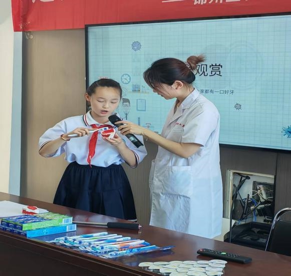 宣讲环节寓教于乐,团队成员们通过动画短片、刷牙儿歌开启科普,用“牙齿为什么会疼”等问题引导思考,教孩子们认识蛀牙成因与正确刷牙方法。