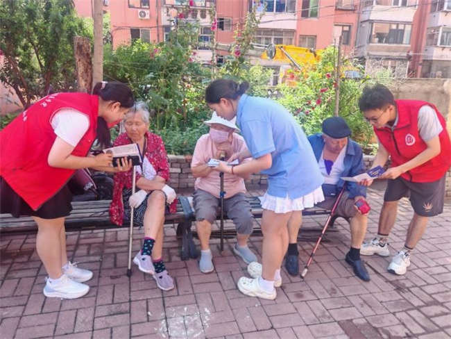 团队协作显担当,15名师生分工明确,宣讲、义诊、记录有条不紊,刘奕含、张棚等成员耐心解答疑问,展现医学生的专业素养。