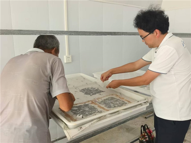 邹金城老师协助蚕农完成蚕卵补催青